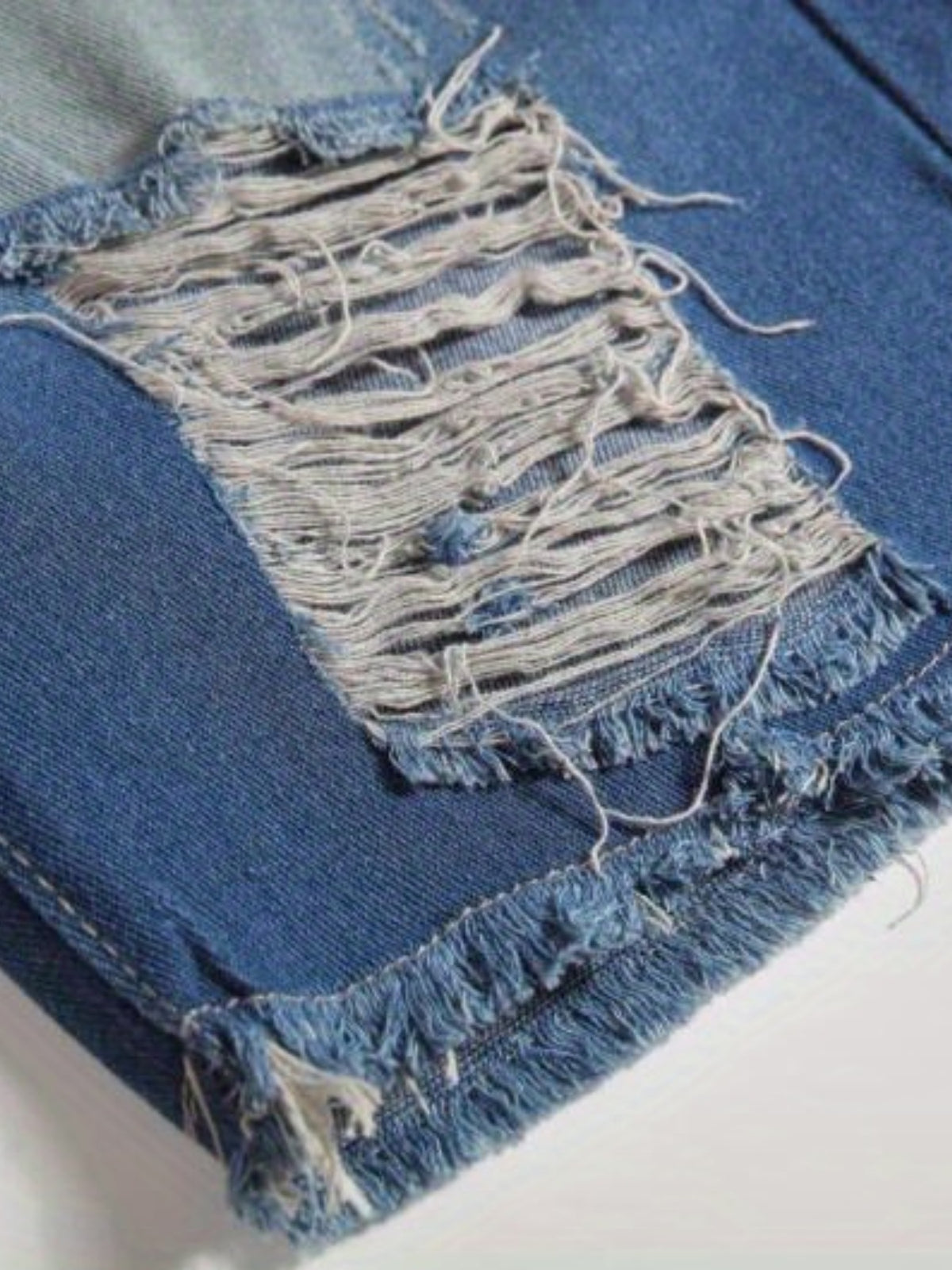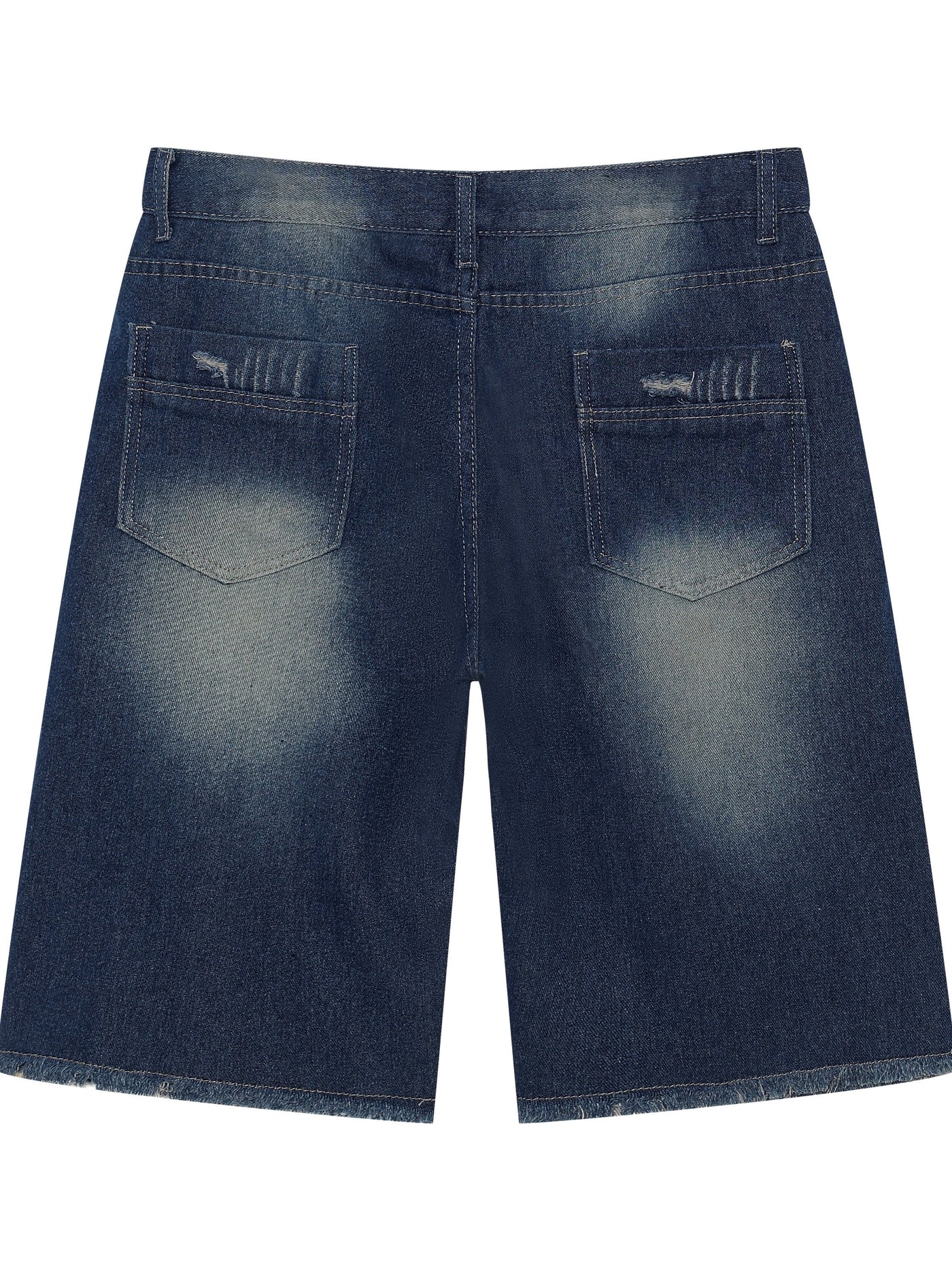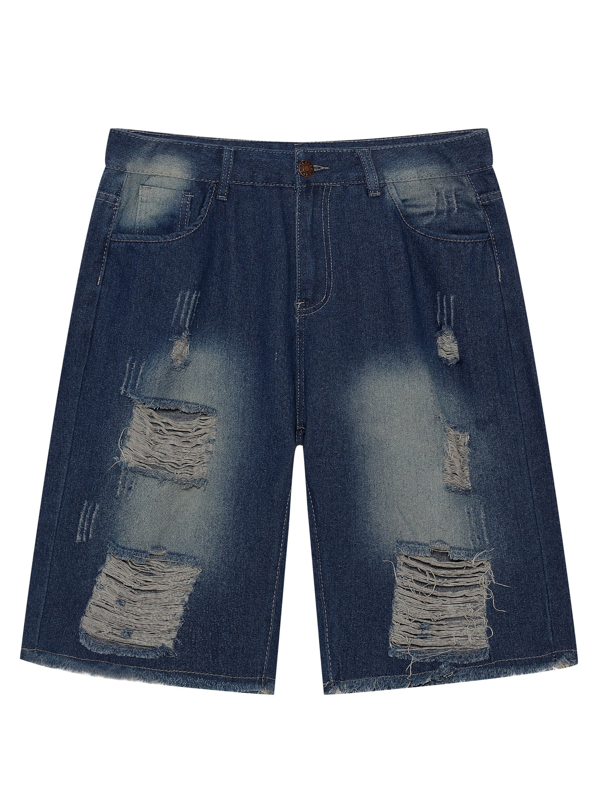 Ripped Avenue Mens Distressed Denim Shorts - Casual Street Style, All-Season Match, Summer Coolness, Comfortable Fit, Trendy Design - Blue / S(31)