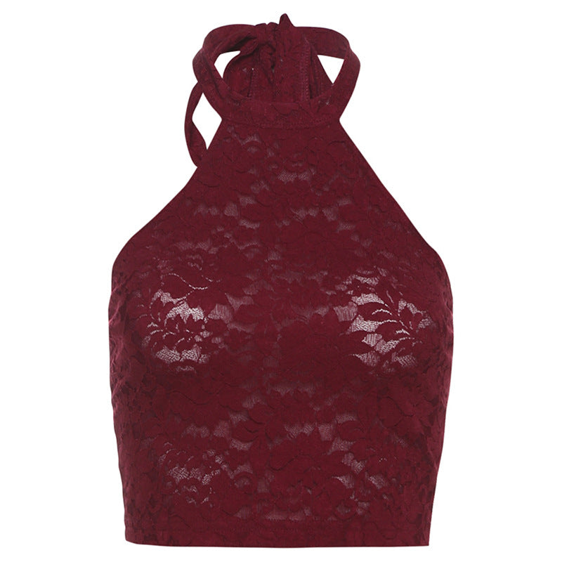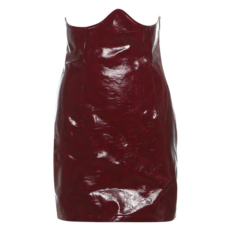 Solid Color Slim Halter Top And High-Waist Skirt Set - Burgundy Top / S