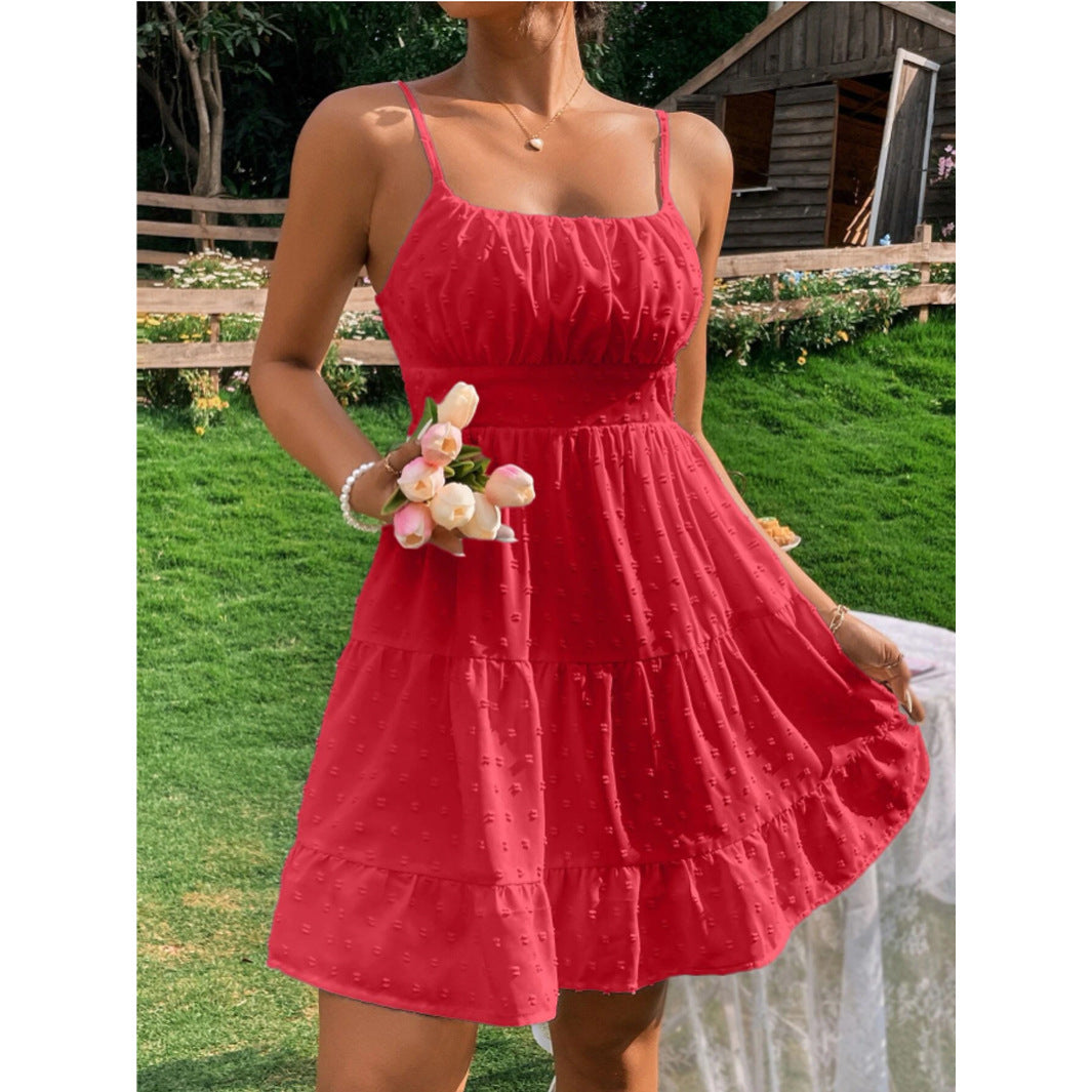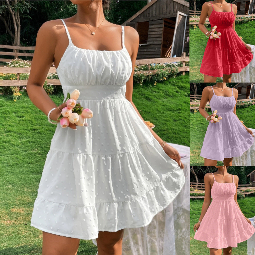Summer Polka Dot Sling Dress - Lavender Purple / L
