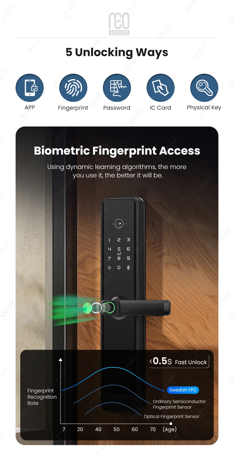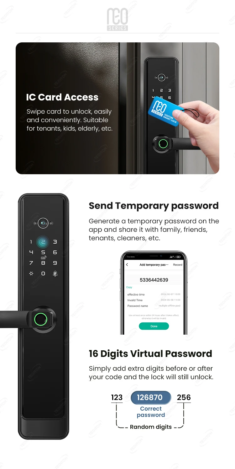 Tediton NEO Smart Lock Israel Tuya electrical Fingerprint Card Digital Lock For Home Fingerprint Smart Locks With Key