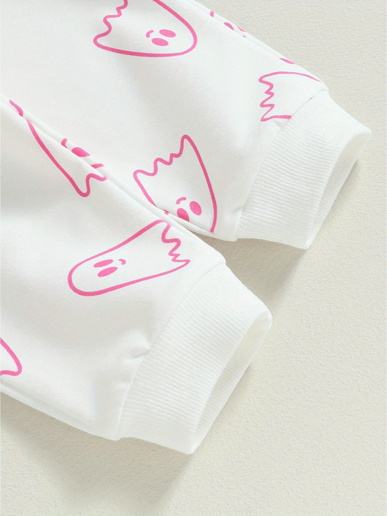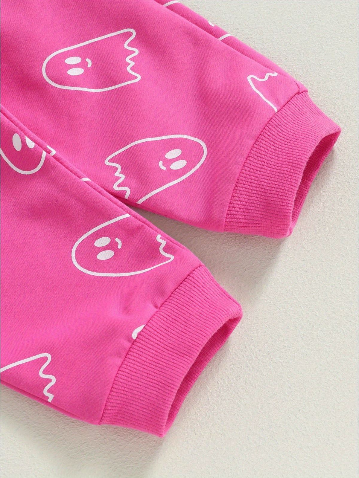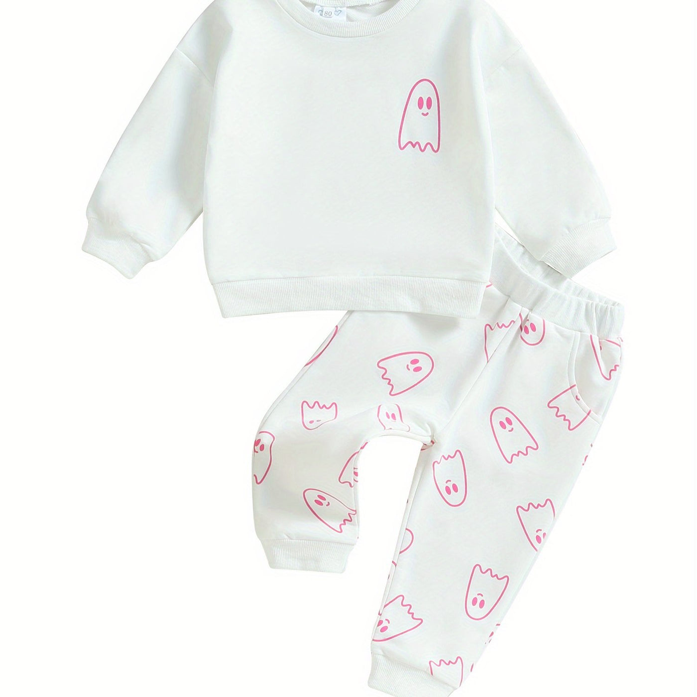 Toddler Girls Boys Fall Outfits Ghost Print Crew Neck Long Sleeve Sweatshirts and Long Pants 2Pcs Halloween Clothes Set - Rose Red / 9-12M