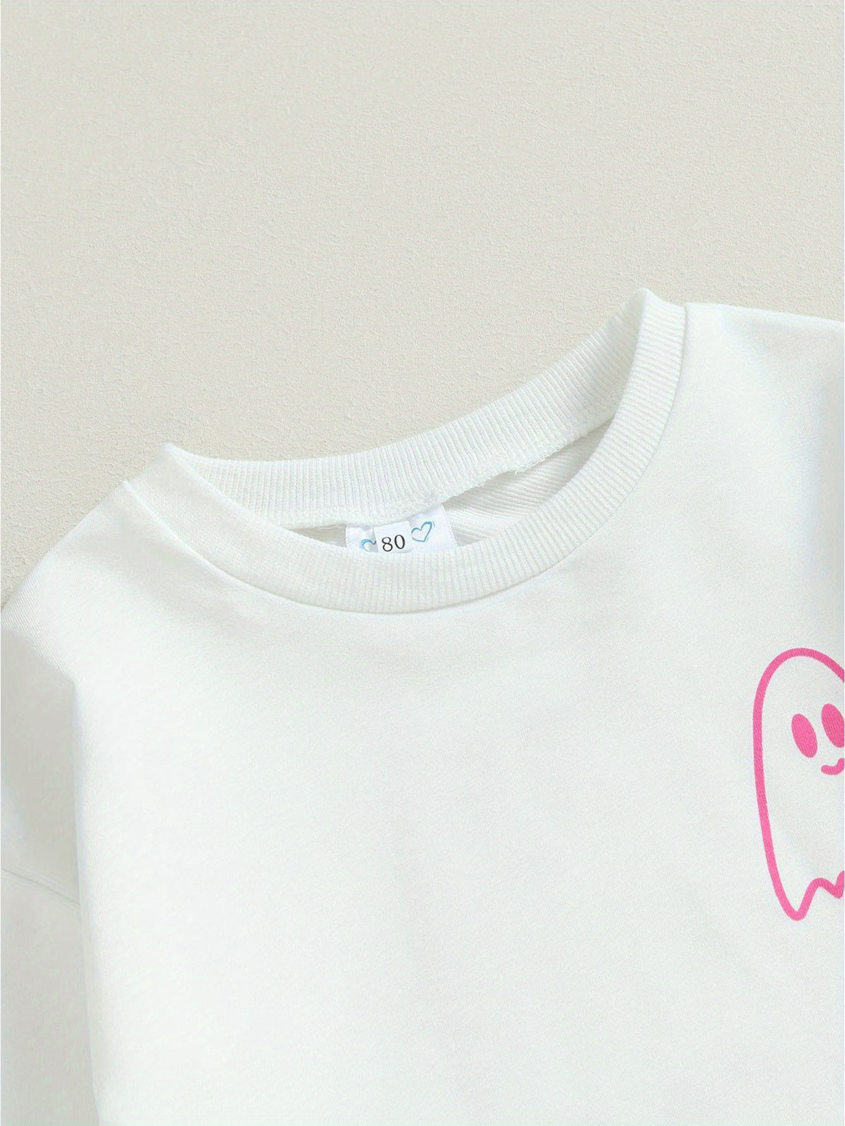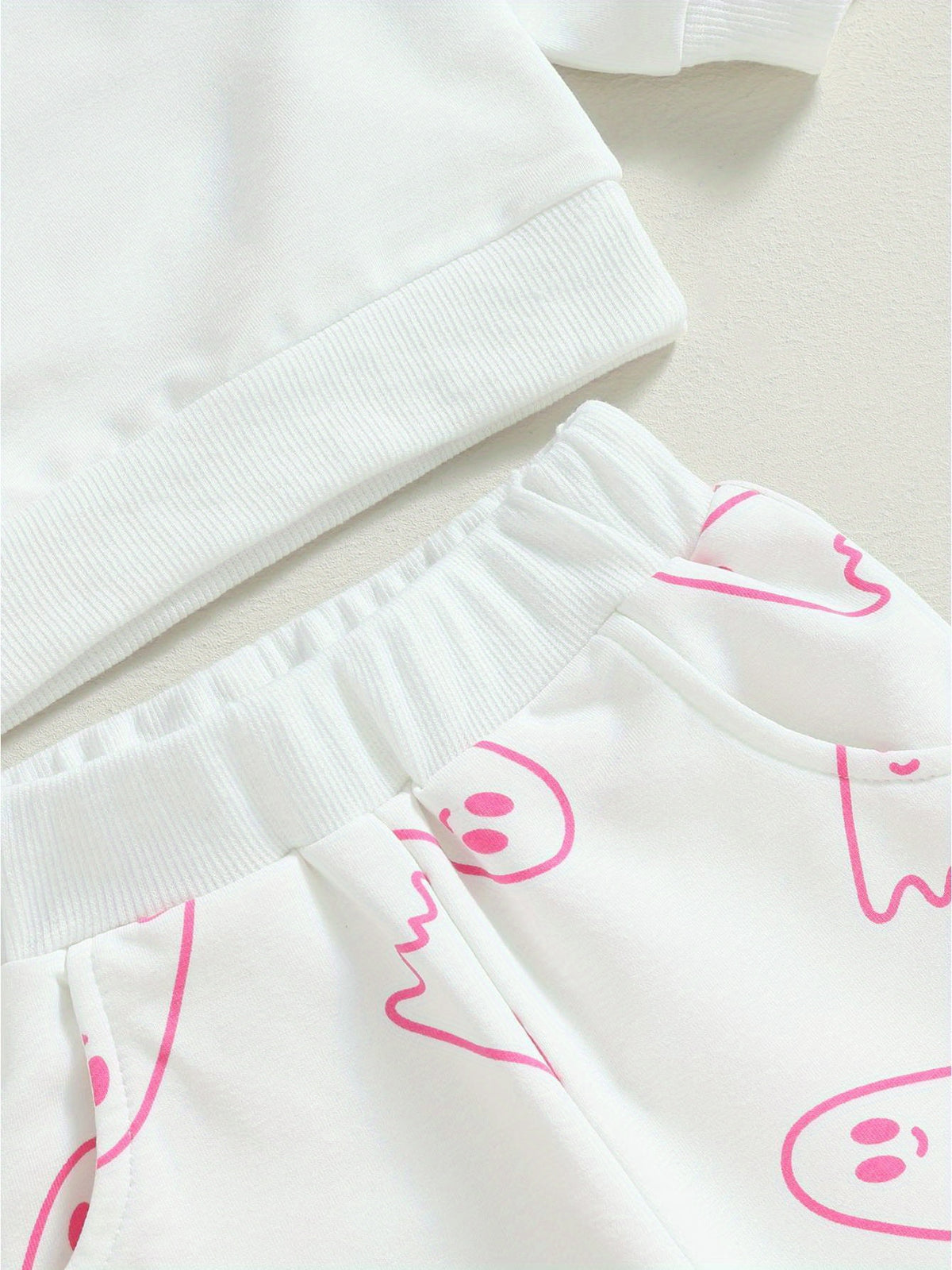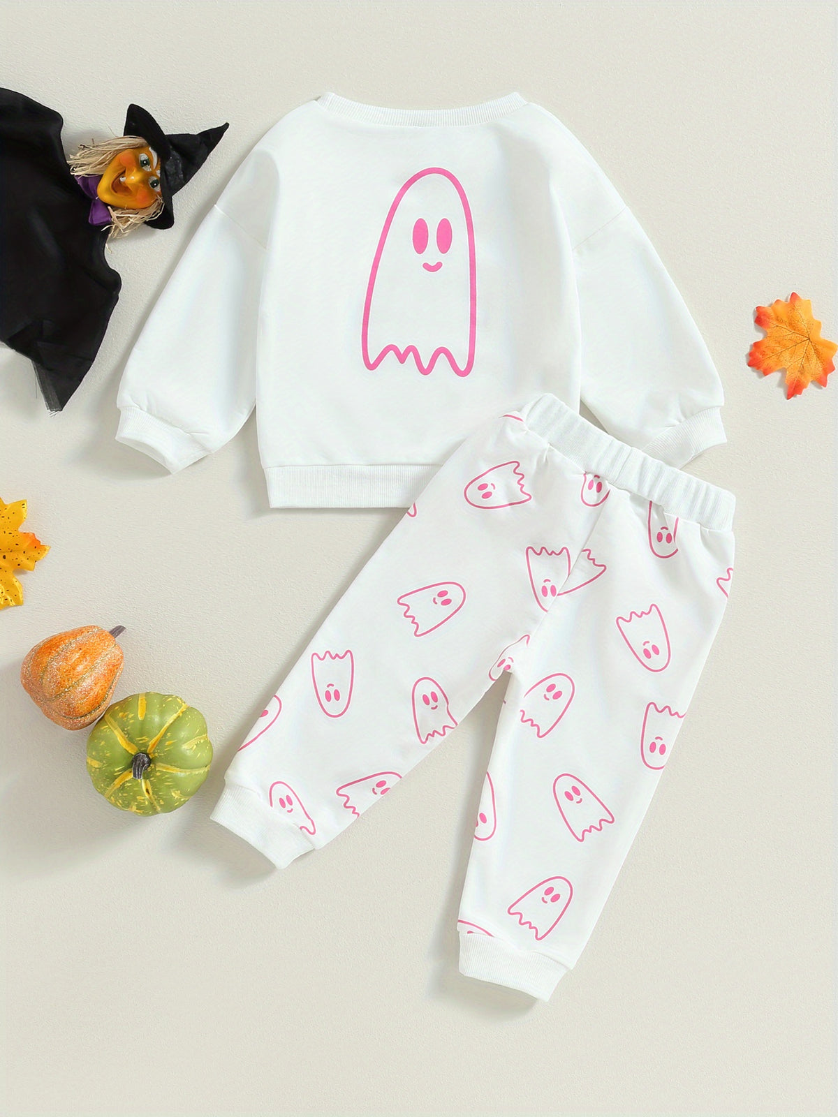 Toddler Girls Boys Fall Outfits Ghost Print Crew Neck Long Sleeve Sweatshirts and Long Pants 2Pcs Halloween Clothes Set