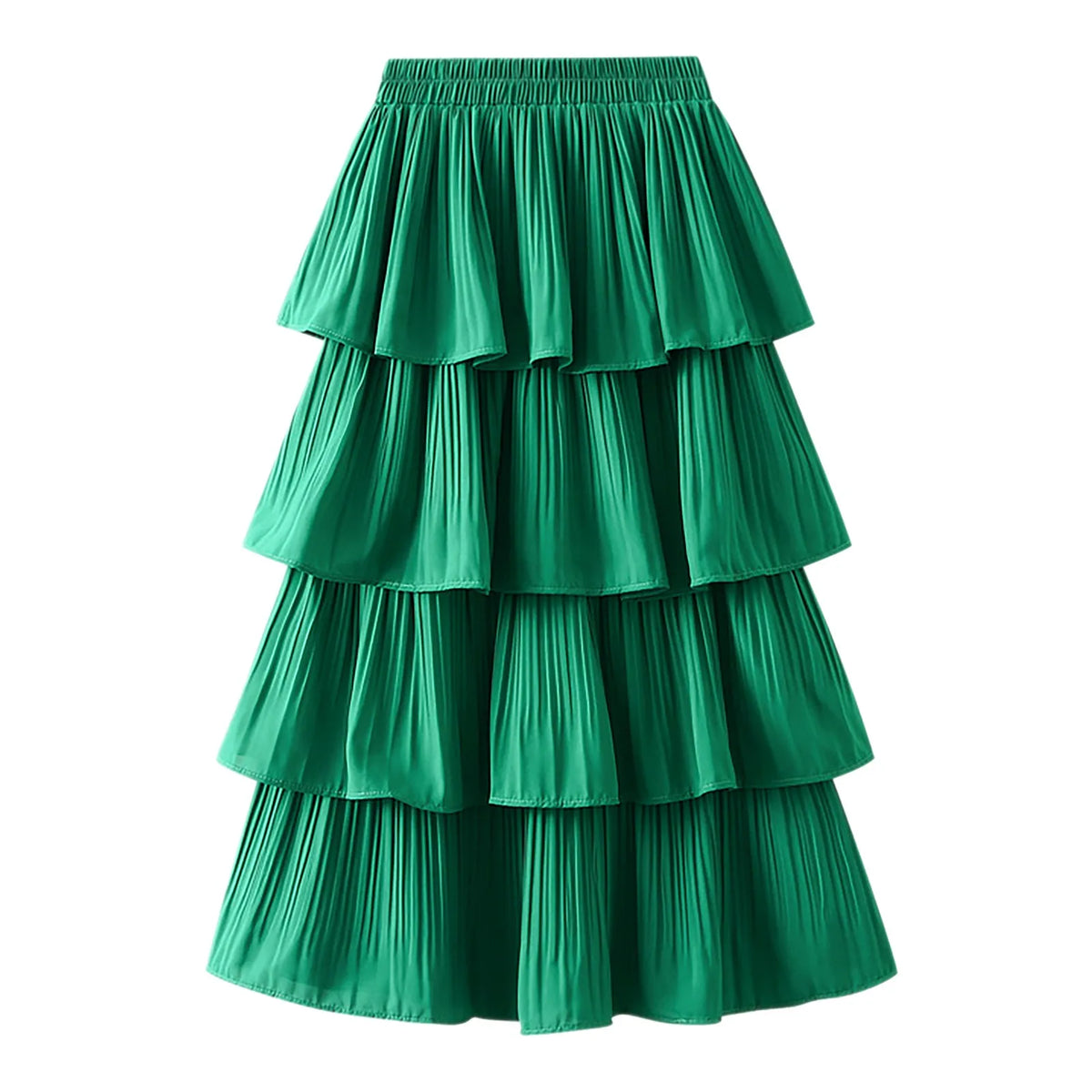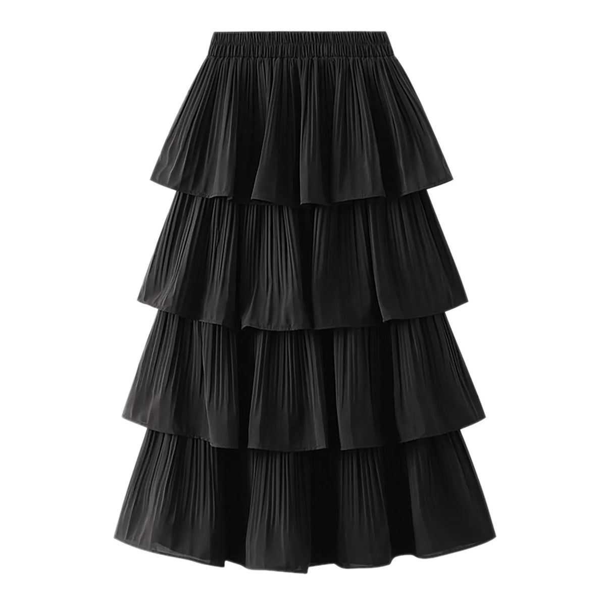 Women Skirt Set New Women Tiered Pleated High Waist Cake Skirt Lady Casual Dress Female Solid Skirt Skirts for Women - Black / One Size / United States