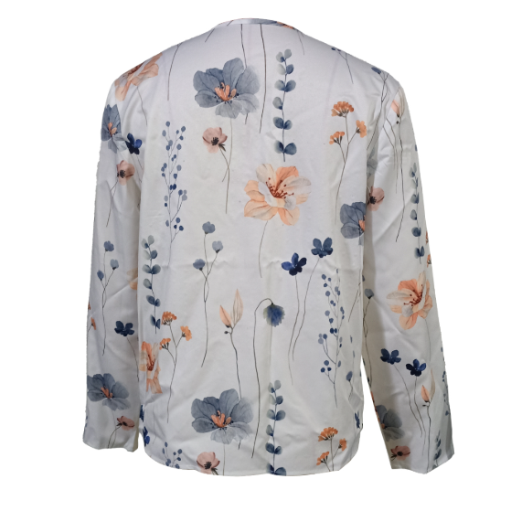Women's Floral Design Relaxing Vacation Shirt, Stylish Long Sleeve Blouse - White / L
