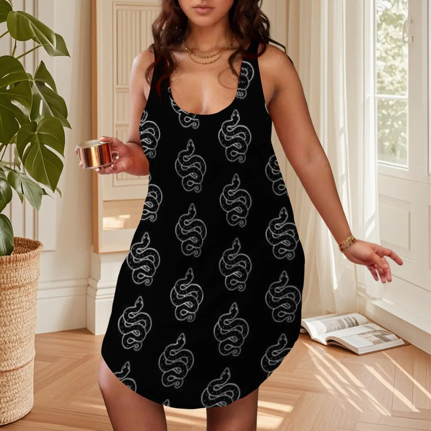 Women's Snake Print women's dress fashion Serpent Design Gothic Style Casual Summer Top - White / 2 XL