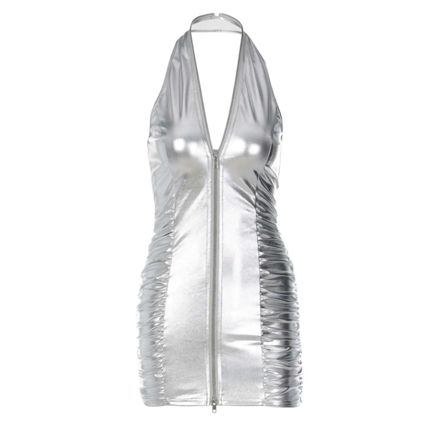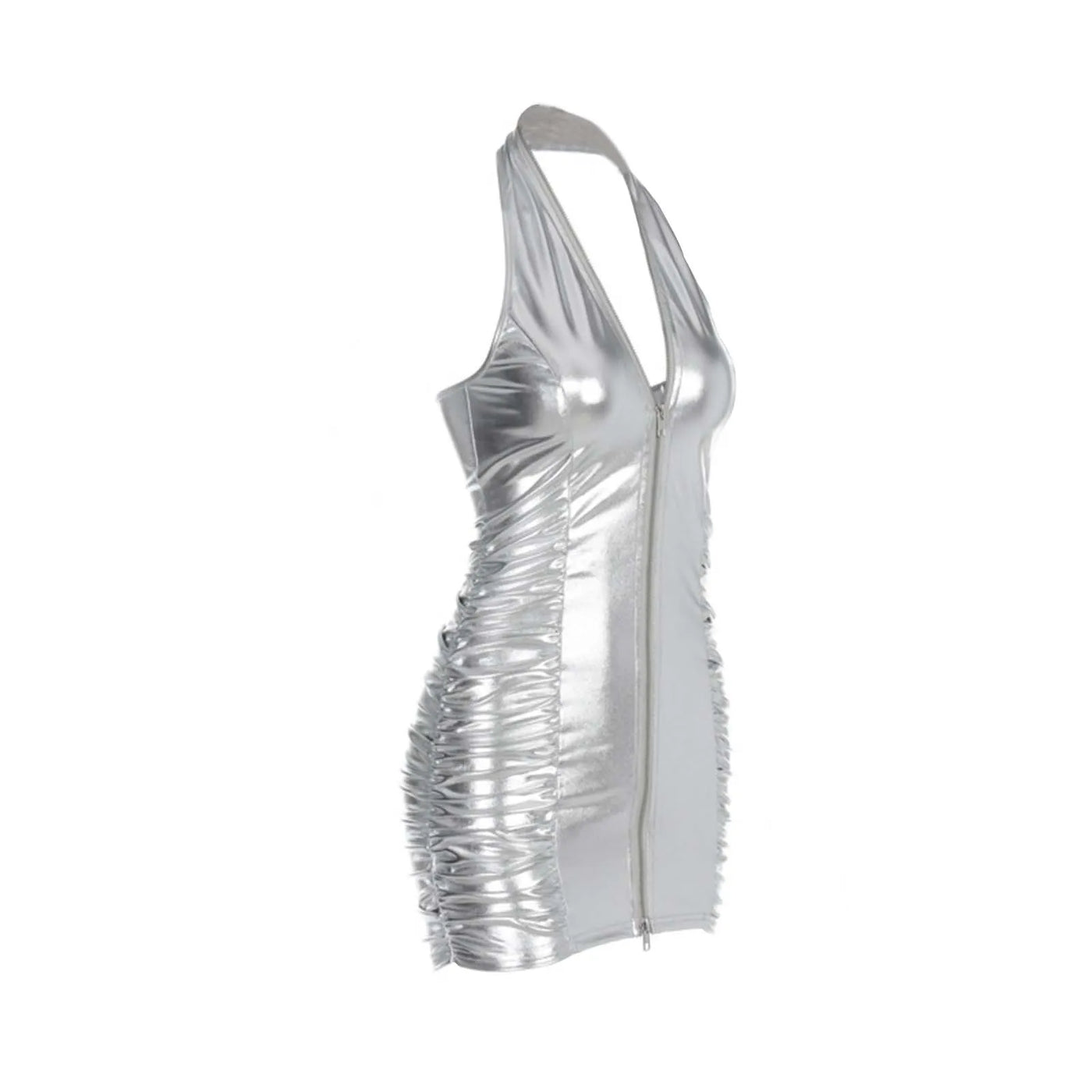Women's Solid Color Pleated Sexy Halter Zippered Slim Fit Wrap Buttock Dress