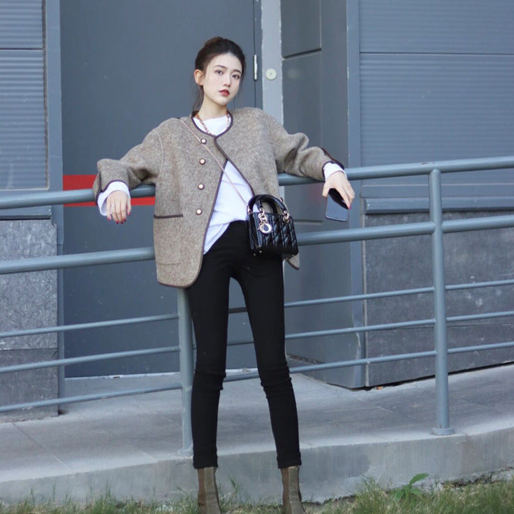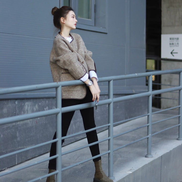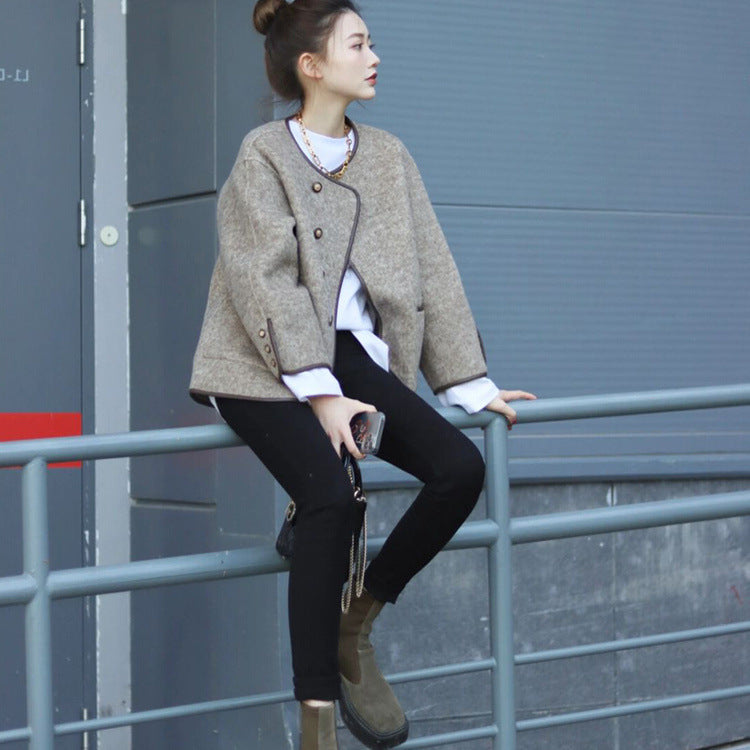 Women's Wool Blend Short Coat Double Faced Chanel Inspired Design